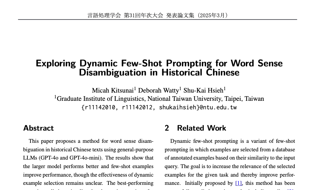Exploring Dynamic Few-Shot Prompting for Word Sense Disambiguation in Historical Chinese